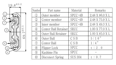 | 4 | Center ball retainer | SECC | 1.00 x 77.0 x L |